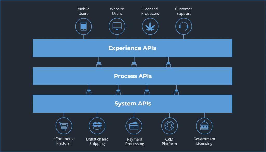The MuleSoft API middleware platform established intelligent connectivity between the front-end eCommerce platform and multiple back-end systems for customers, sales, and logistics.