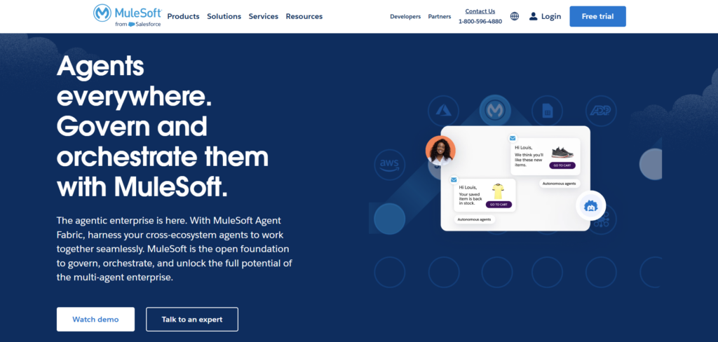 MuleSoft Anypoint Platform is often chosen for large‑scale app integrations and strong API monitoring. It connects smoothly with cloud databases in CRM or ERP systems and provides tools to automate integrations using reusable APIs.