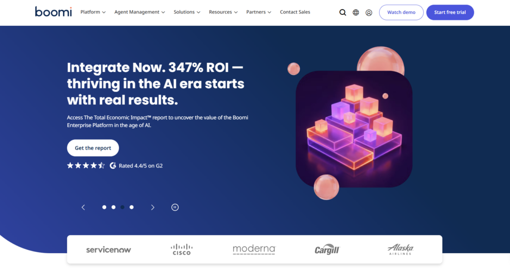 Boomi is a cloud‑native, low‑code iPaaS platform recognized for quick integrations and a simple drag‑and‑drop interface. It runs workflows on lightweight runtime engines called Atoms, which can be deployed in the cloud or on‑premises, making it effective for hybrid integration.